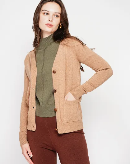 Gilet long en Cachemire mélangé col châle fourré thermique camel