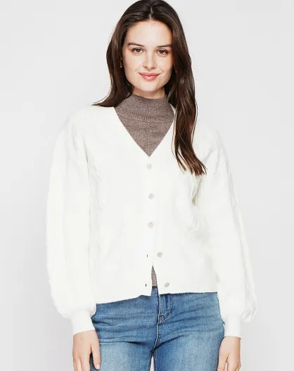 Cardigan en maille torsadée écru