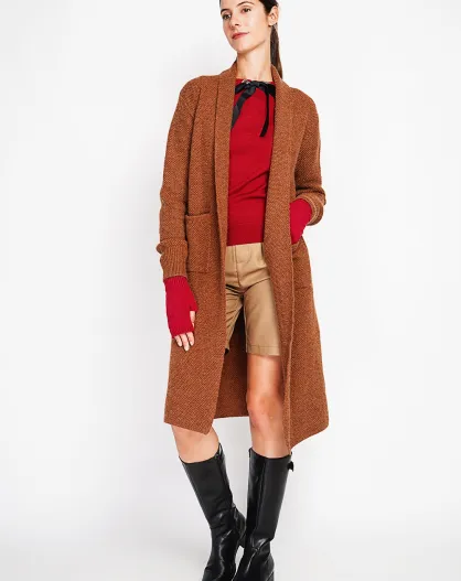 Gilet Alexane 100% laine cache-coeur marron chamois