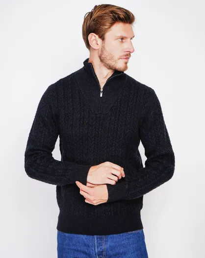 Pull à losanges en laine et alpaga noir et gris et blanc