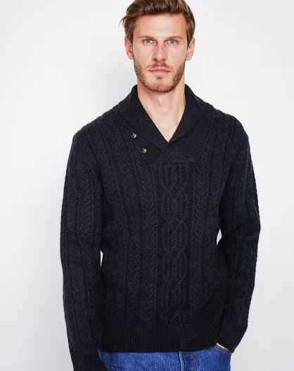 Pull col châle noir