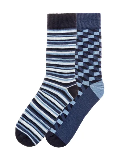 Lot de 2 paires de chaussettes en coton bleues