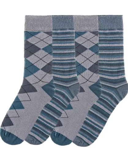 Lot de 4 paires de chaussettes en coton gris/bleu