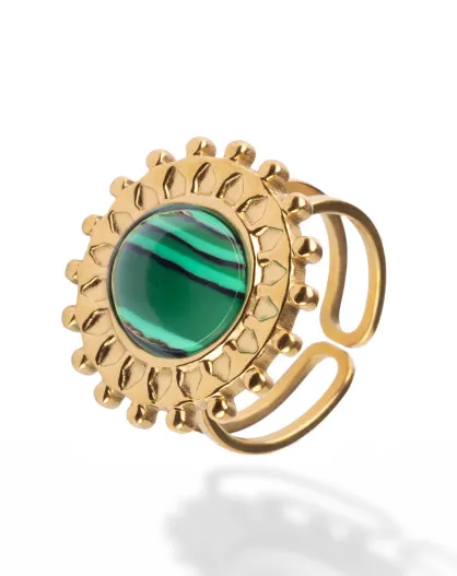 Bague en Acier plaqué Or jaune & Malachite synthétique dorée