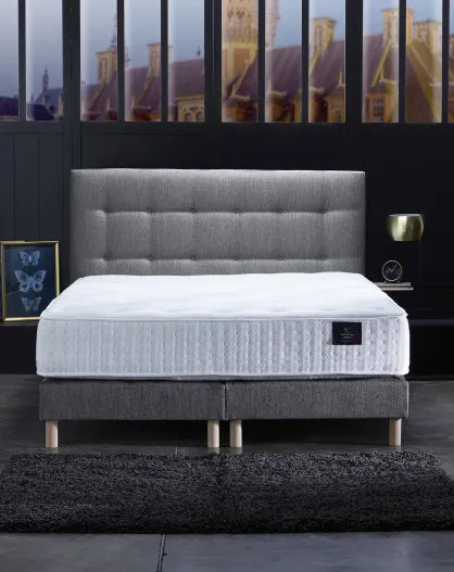 Ensemble Hécate 2 Matelas ressorts ensachés + 2 Sommiers + Tête de lit capitonnée gris