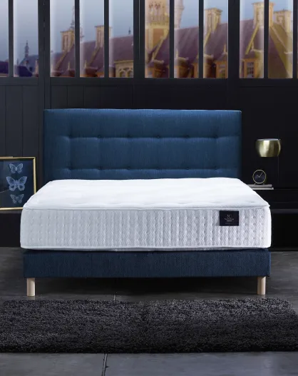 Ensemble Hécate 2 Matelas ressorts ensachés + Sommier + Tête de lit capitonnée bleu