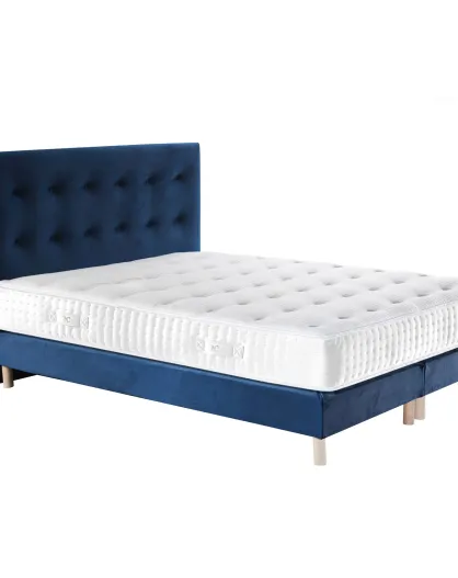 Ensemble Comète Matelas ressorts ensachés + 2 Sommiers + Tête de lit capitonnée bleu