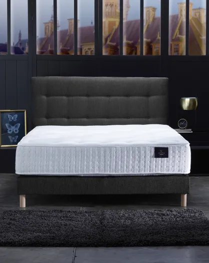 Ensemble Hécate 2 Matelas ressorts ensachés + Sommier + Tête de lit capitonnée anthracite