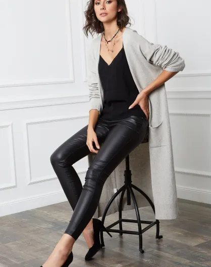 Gilet long en Cachemire mélangé col châle fourré thermique camel