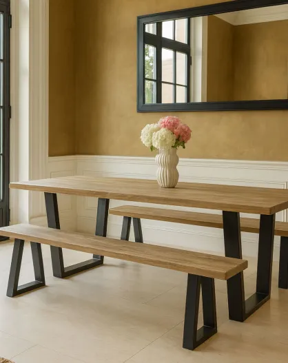 Ensemble Table 235Cm + 2 Bancs 220Cm en Bois de Pin/Acacia