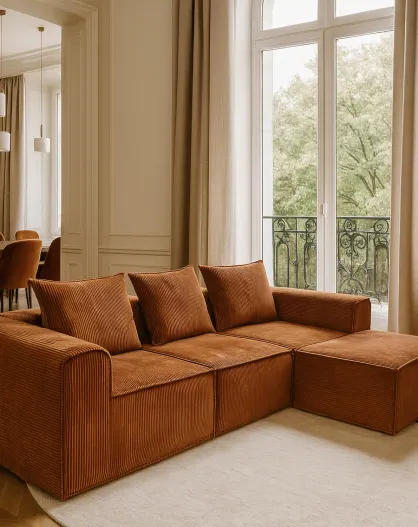 Canapé D'Angle Compressé En Velours Côtelé Brique 270X170X58Cm Cocoon