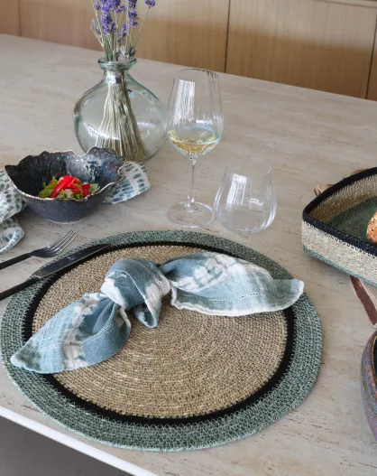 6 Sets De Table D38Cm En Jonc De Mer Naturel Et Vert Iris