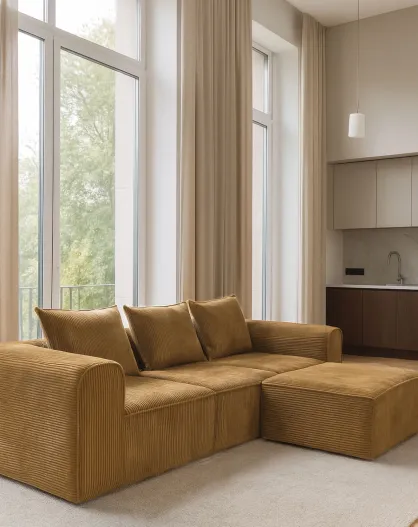 Canapé d'Angle Compressé Velours Côtelé Curcuma 270X170X58Cm Cocoon