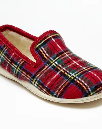 Chaussons charentais fourrés Laine tartan rouge bord rouges