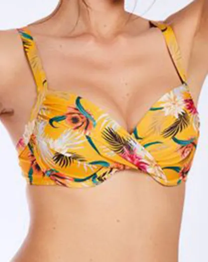 Haut de maillot de bain Saskia imprimé jaune curry/multicolore