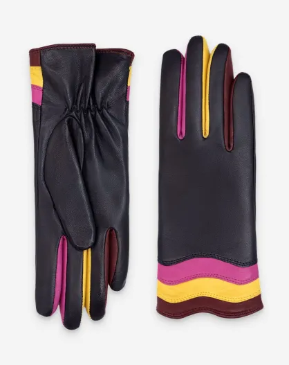 Gants cuir agneau-100% soie-21558SN-noir-fuchsia