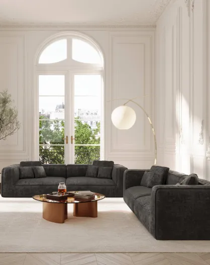 Canapé 4 places ROMY Velours tramé Noir - 304x105x70