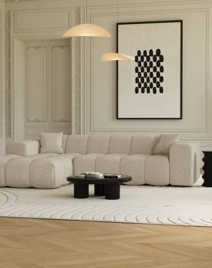 Canapé angle droit COVA Tissu bouclette Crème - 290x94x69.5