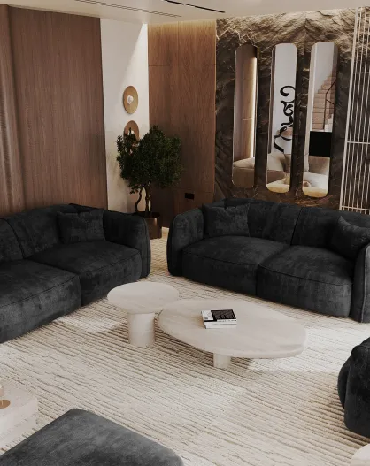 Canapé 4 places ROMY Velours tramé Noir - 304x105x70