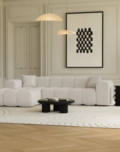 Canapé angle gauche COVA Tissu bouclette Crème - 290x94x69.5