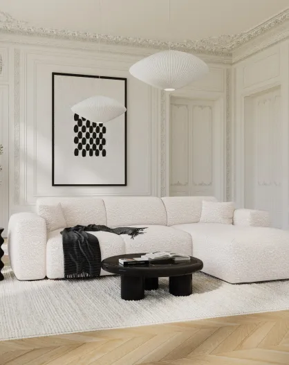 Canapé grand angle droit convertible LIVA Tissu bouclette Crème - 283x180x73