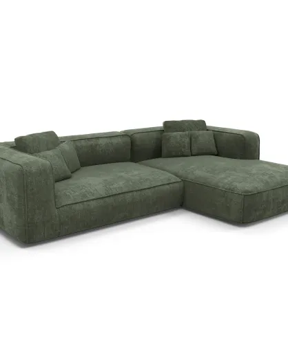 Canapé angle droit 255cm ROMY Velours tramé Vert olive - 255x160x70