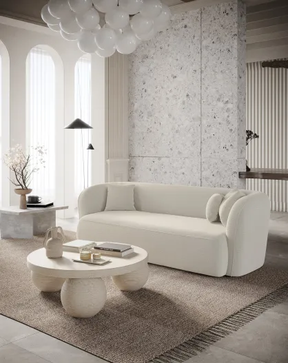 Canapé 4 places COVA Tissu bouclette Crème - 247x94x69.5