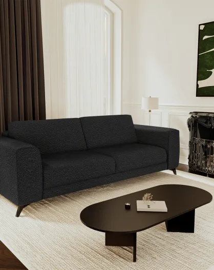 Canapé 3 places EMY Tissu bouclette Noir - 205x88x77