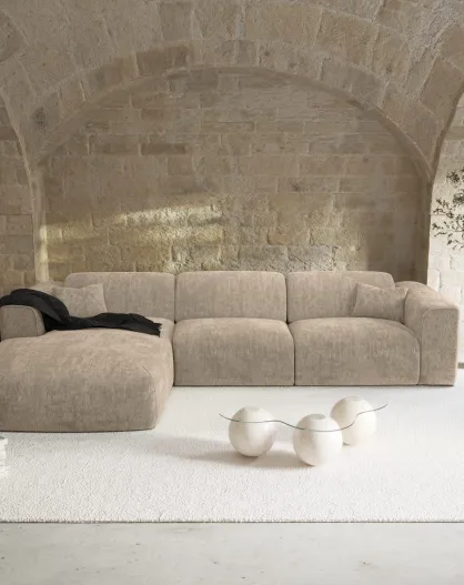Canapé angle gauche COVA Tissu bouclette Beige - 290x94x69.5