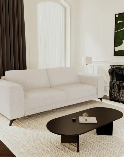 Canapé 4 places COVA Tissu bouclette Crème - 247x94x69.5
