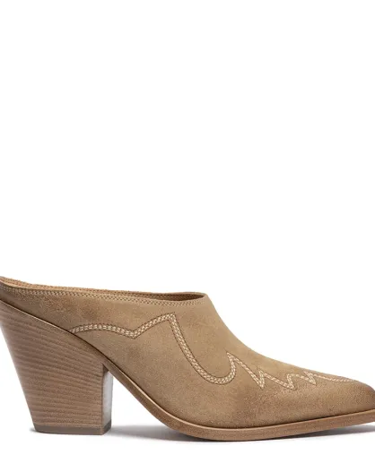 Sabots western en veau velours Caramel