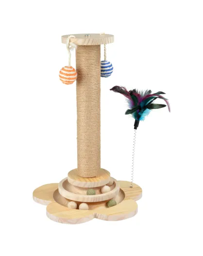 colonne a griffer avec jouets integres corde jute et structure bois d.30*h.40cm
