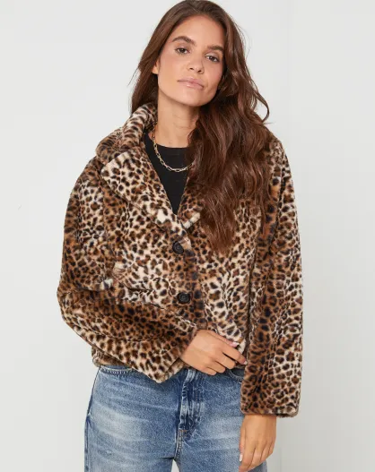 Manteau en fausse fourrure imprimé Chéril Léopard Camel