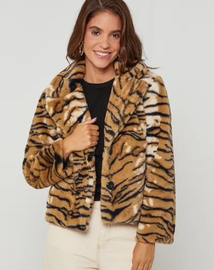 Manteau en fausse fourrure imprimé Oreo Tigre Camel
