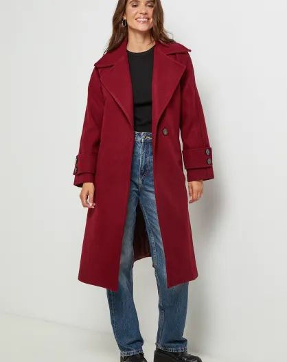 Manteau long col rabat Claire Bordeaux