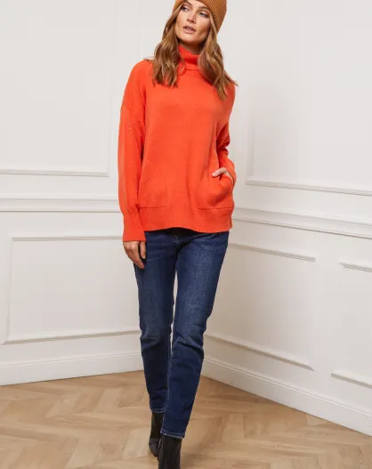 Pull 100% Cachemire Manches Ballon Angelina Col rond corail