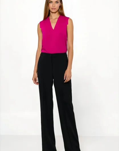 Pantalon tailleur flare à carreaux vichy noir et blanc
