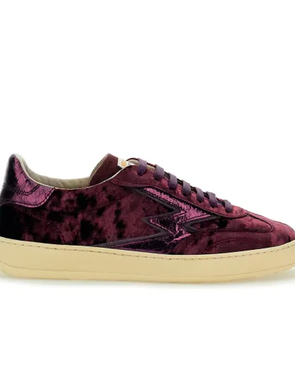 Sneakers en Velours de Cuir Club bordeaux métallisé