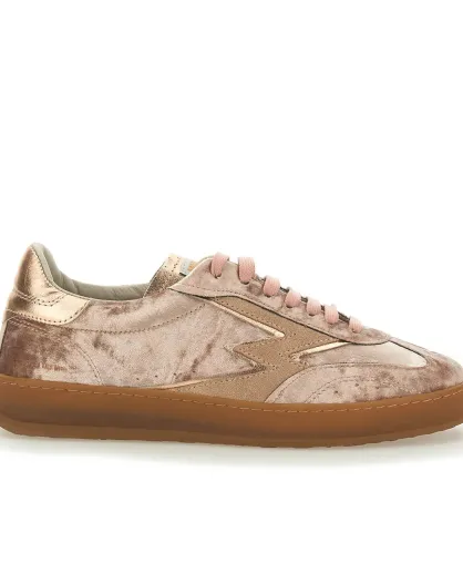 Sneakers en Velours de Cuir Club rose metallisé