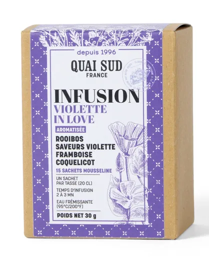 Infusion Violette In Love aromatisée Rooibos saveurs Violette, Framboise et Coquelicot - 15 Infusettes