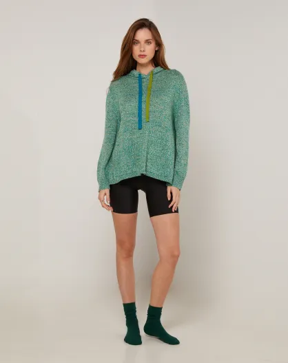 Pull Hortensia à capuche chiné vert