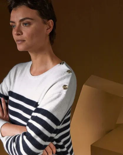 Pull en Laine & Cachemire Norma col rond blanc/rouille/bordeaux
