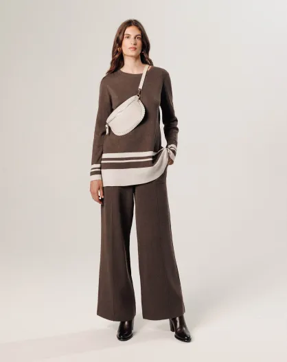 Pull Chantal-Marie col roulé motifs épaules marron camel