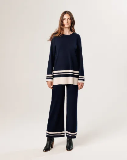 Pull Giuliana rayures inférieures bleu nuit