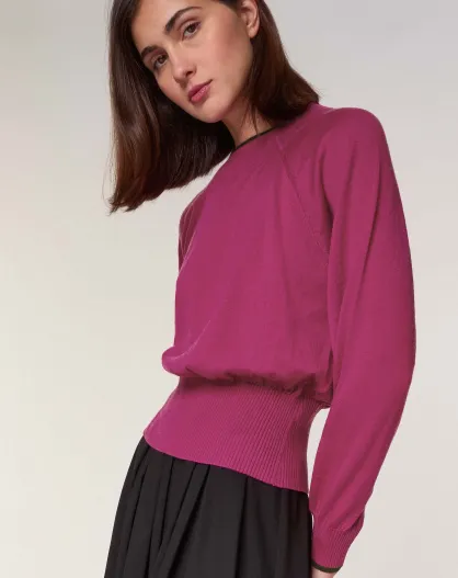Pull Rhiana 100% laine col bicolore rose fuchsia