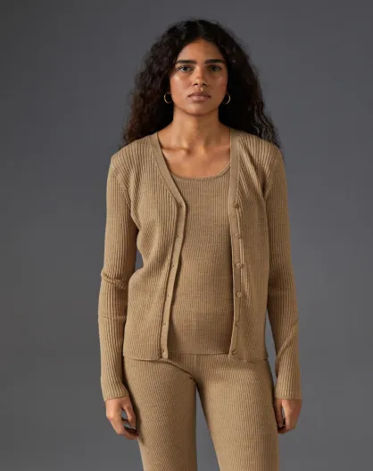 Gilet Alexane 100% laine cache-coeur marron chamois
