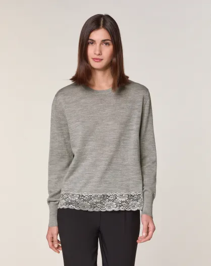 Pull Bethsabée 100% laine col roulé jacquard gris souris