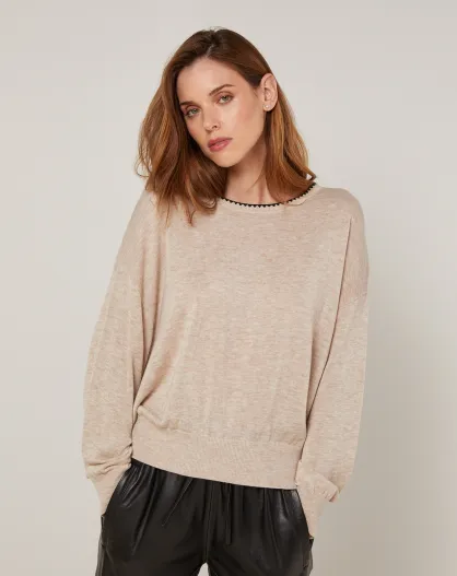 Pull Audrey 100% Laine Col Satin beige ficelle