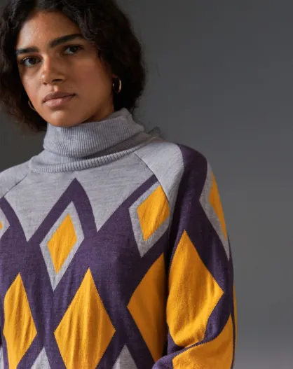 Pull Bethsabée 100% laine col roulé jacquard gris souris