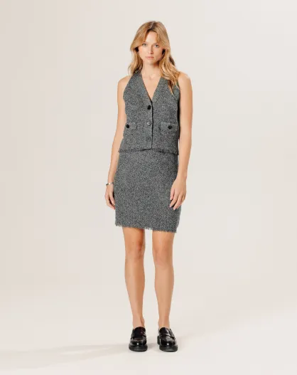 Gilet Esther en Laine & Cachemire boutonne col V sans manches gris chiné